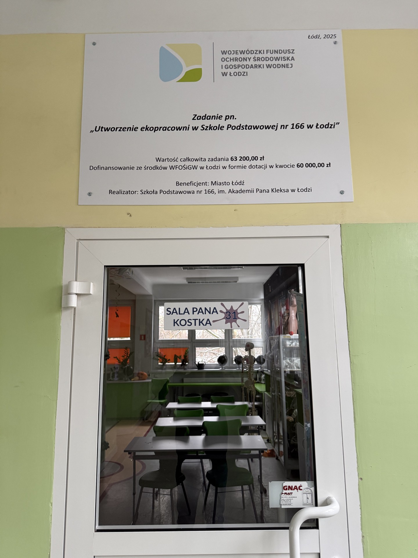 Z radością informujemy, że nasza placówka zrealizowała projekt utworzenia nowej pracowni, dzięki dofinansowaniu w wysokości 60 000 zł ze środków Wojewódzkiego Funduszu Ochrony Środowiska i Gospodarki Wodnej w Łodzi w ramach dotacji "Utworzenie ekopracowni w Szkole Podstawowej nr 166 w Łodzi". Całkowita wartość projektu wyniosła 63 200 zł. Nowa przestrzeń została wyposażona w nowoczesne narzędzia i materiały, które umożliwią prowadzenie atrakcyjnych zajęć z zakresu edukacji ekologicznej.