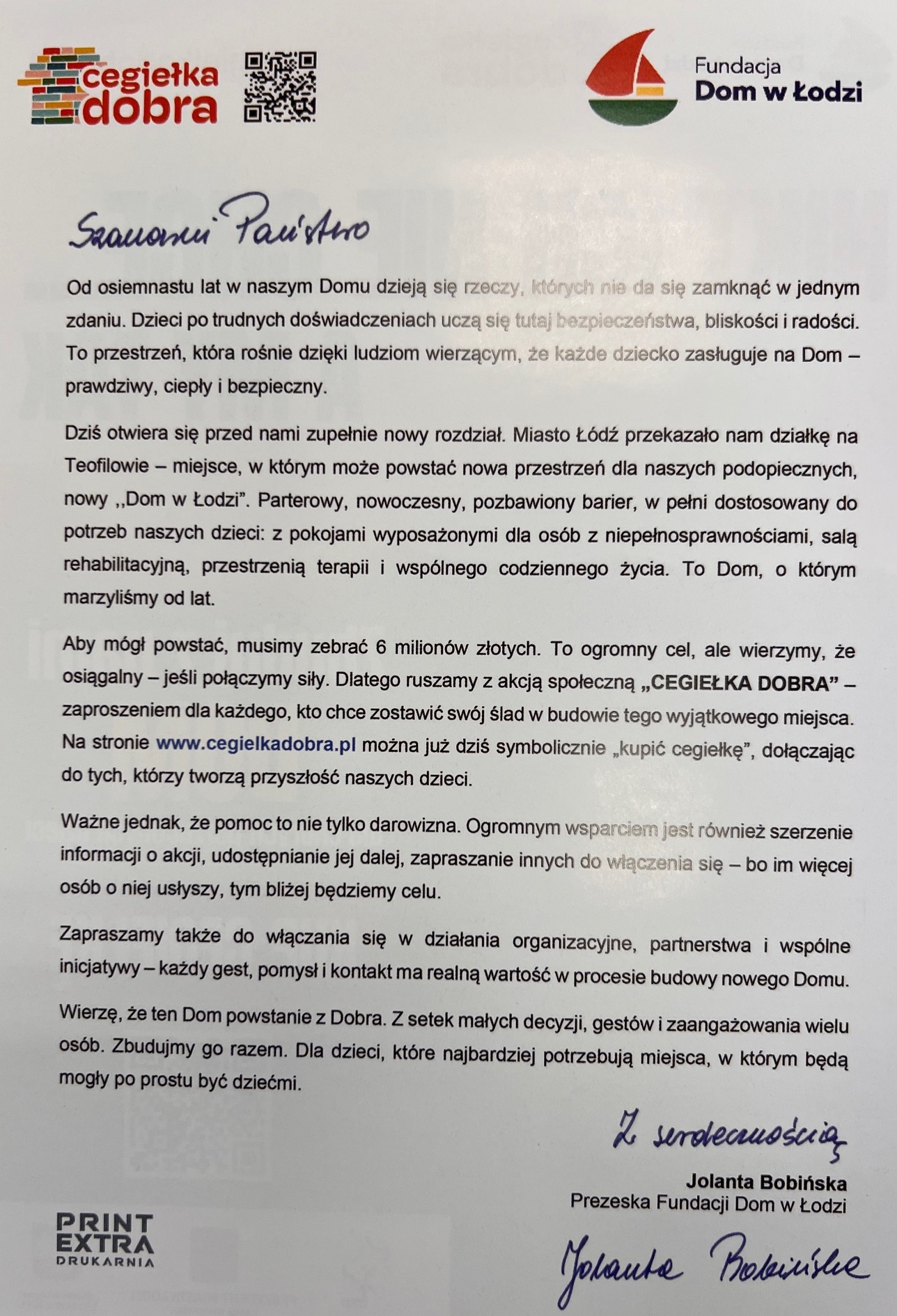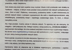 w imieniu organizatorów akcji „Cegiełka Dobra”, Wydział Edukacji Urzędu Miasta Łodzi, zwraca się z uprzejmą prośbą o wsparcie wyjątkowej inicjatywy o głębokim znaczeniu społecznym.